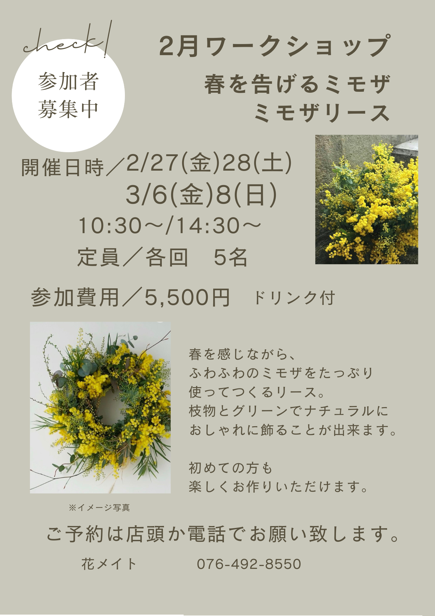 お手数ですが、変更ご希望の際はご連絡ください。